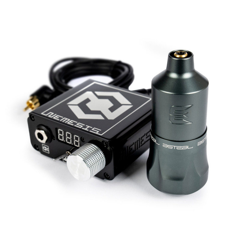 Цифровото захранване NEMESIS е висококачествено, прецизно захранване за татуировки. Корпусът му е изработен от едно цяло парче алуминий, обработен с ЦПУ. Захранването NEMESIS е напълно функционално устройство, което гарантира дълготрайна и надеждна употреба. Въпреки компактния си размер, той осигурява значителна мощност, което го прави идеален както за бобини, така и за ротационни машини.