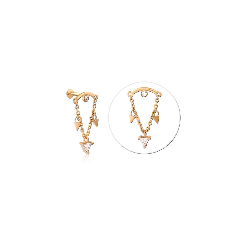 DANGLING CHAIN WITH TRIANGLES - EAR - GOLD