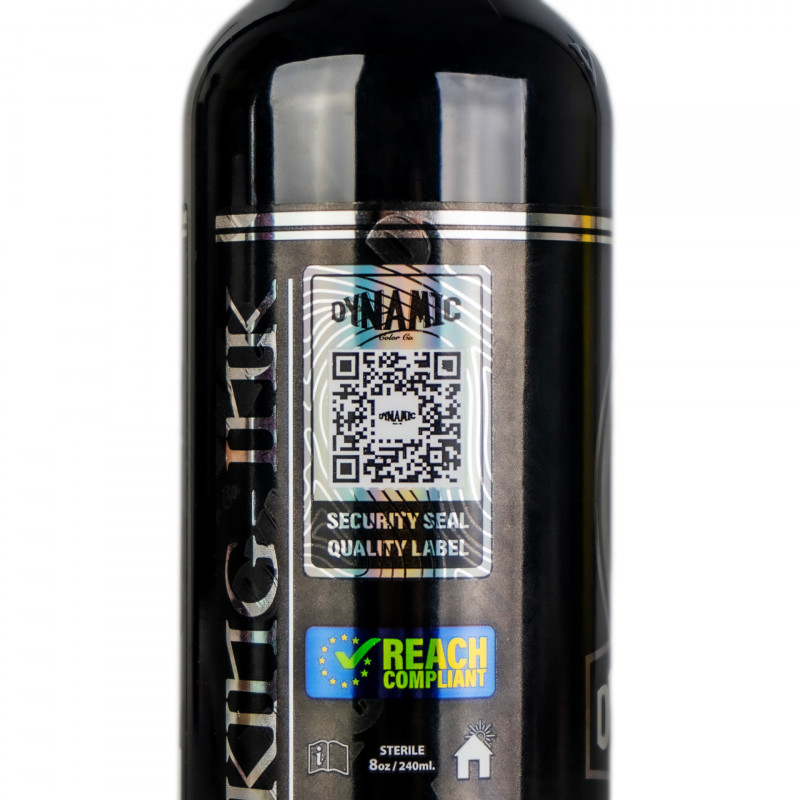 Всички мастила Dynamic Color се доставят в кристално прозрачни PET бутилки с покритие против фалшифициране с логото Dynamic. Дори термичните уплътнения на бутилките, които закрепват стерилизирания продукт, имат печат за одобрение Dynamic Color.