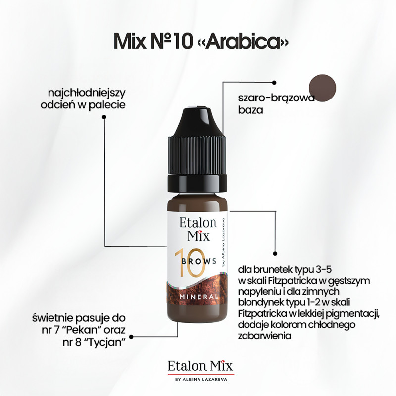 Etalon Mix je celosvětově uznávaná řada pigmentů pro permanent makeup . Tyto pigmenty jsou oslavovány pro svou zářivou, dlouhotrvající barvu a snadnou aplikaci. Tyto barvy, navržené pro maximální všestrannost, lze snadno míchat a vytvářet tak vlastní odstíny. Jejich složení bylo vyvinuto s ohledem na maximální pohodlí při práci a spokojenost zákazníků. Pigmenty Etalon Mix plně splňují nařízení REACH a splňují nejvyšší evropské standardy bezpečnosti a kvality.