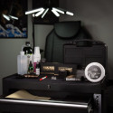 Základem sady je Equaliser Proton MX s 3,5mm zdvihem, spárovaný s bezdrátovým napájecím zdrojem, který poskytuje větší volnost pohybu a čistší pracovní stanici. Tato konfigurace vám umožňuje plně se soustředit na techniku bez omezení kabelu. Stroj je vybaven všemi prvky potřebnými pro každodenní práci, zatímco tetovací kosmetika a příslušenství používané při práci s inkoustem a kůží doplňují sestavu. Sada také obsahuje produkty pro přenos šablon, nácvik na syntetické kůži a příslušenství, které pomáhá udržovat čistou pracovní stanici a dobrou organizaci od prvních sezení. Vše lze bezpečně skladovat a přepravovat v ochranném pouzdře, které udržuje vybavení organizované a usnadňuje práci v různých podmínkách.