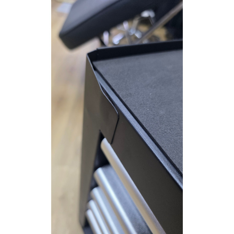 Mobilní pracovní stanice pro uložení tetovacího vybavení. Vybavena pěti prostornými zásuvkami, do kterých se vejde veškeré potřebné příslušenství, a pracovní deskou s praktickou nerezovou překližkou.