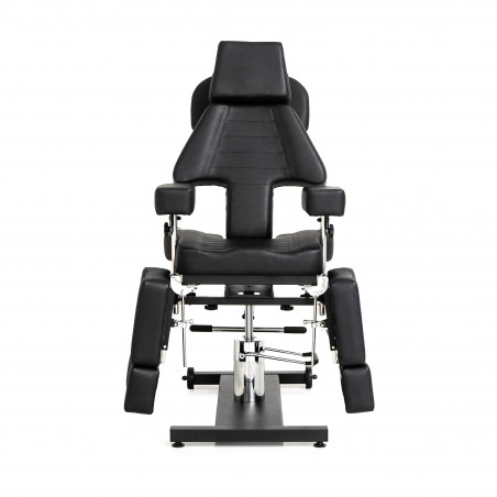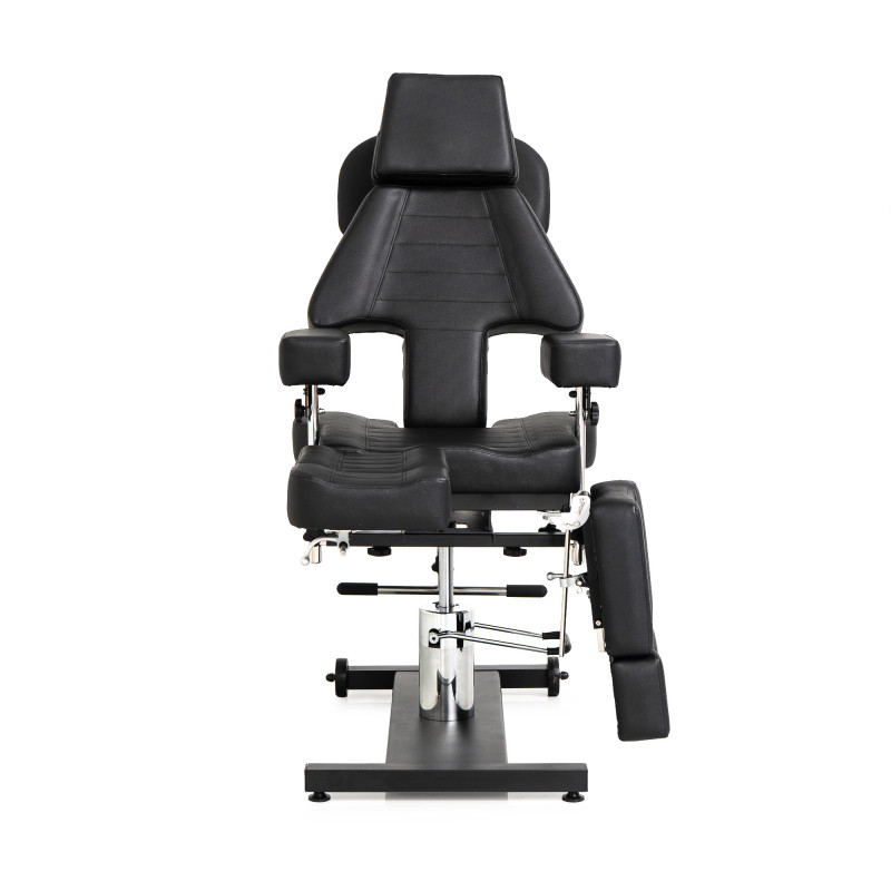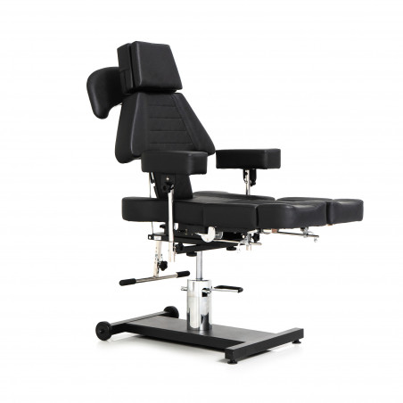 Díky svému klasickému designu se křeslo hodí do každého interiéru tetovacího studia. Základna je vyrobena z vysoce kvalitní oceli, zajišťující stabilitu a bezpečnost při práci. Měkká pěna potažená na dotek ekokůží poskytuje komfort a pohodlí. S úplným nastavením všech prvků židle si můžete být jisti, že najdete perfektní nastavení pro sebe i svého klienta. Tetovací křeslo je skládací a může sloužit jako pohodlné křeslo.