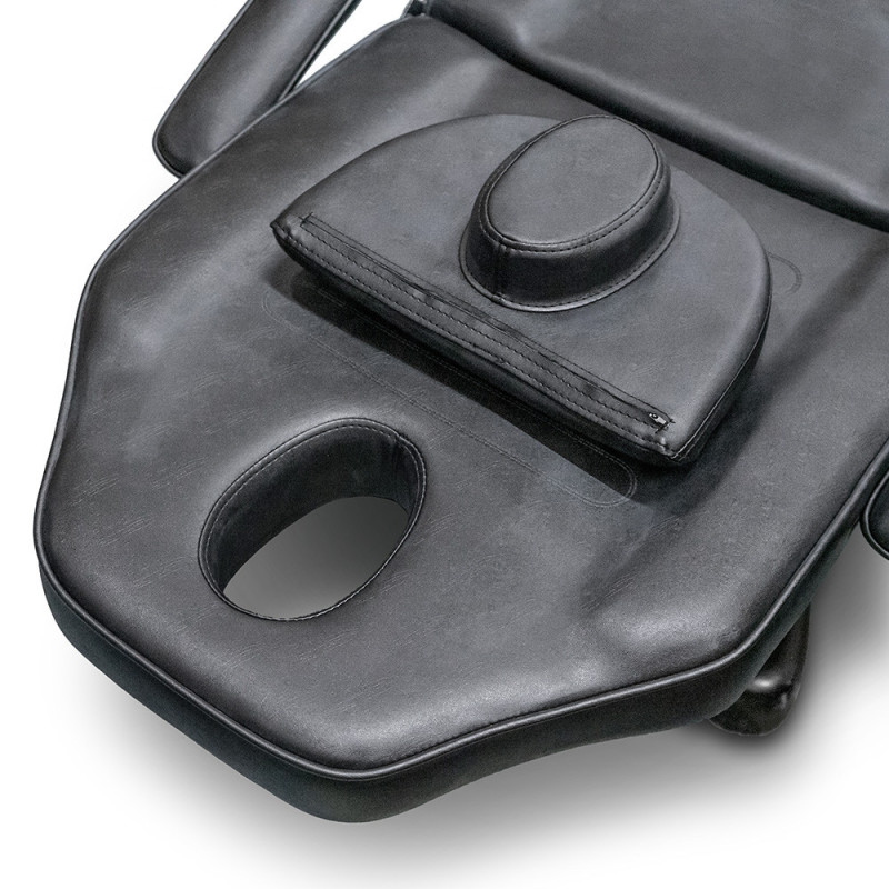 Tetovací křeslo disponuje hydraulickým nastavením výšky a manuálním nastavením opěrek nohou a zad. Mezi další výhody patří snadno odnímatelné područky a opěrka hlavy. Pod polštářem je obličejový otvor. Tetovací křeslo lze přeměnit na pohodlné křeslo. Jeho robustní konstrukce zajišťuje plnou stabilitu během procedur.