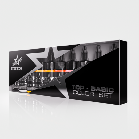 Sada je založena na čistých, jednopigmentových inkoustech, které zajišťují vysokou barevnou stálost a dlouhotrvající výsledky. Inkousty se snadno mísí, což umožňuje plynulé přechody a neomezenou škálu vlastních odstínů. Profesionální podklad, který vám dává plnou kontrolu nad barvou v každém tetování.