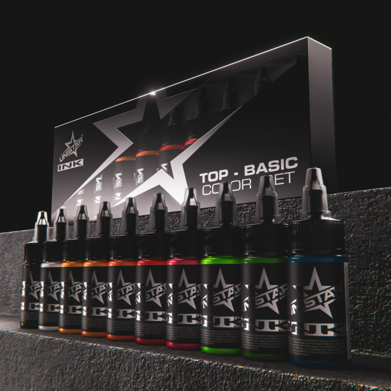 Sada základních barev Unistar Ink Top 10x30 ml – sada 10 intenzivních barev s jedním pigmentem. Vytvořte si klasickou a všestrannou paletu, která je ideální pro každodenní použití.
