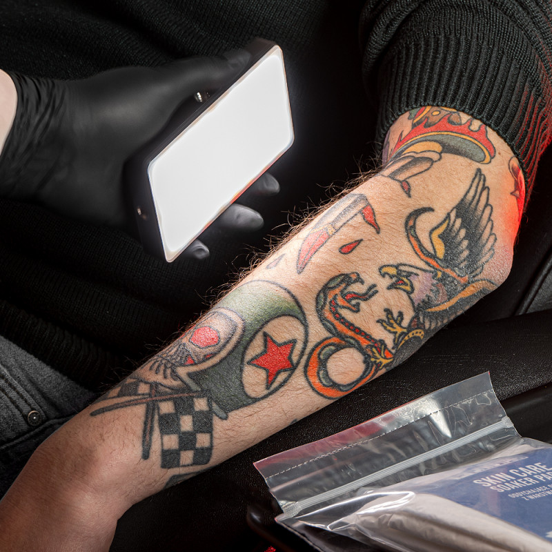 Klein, elegant und einsatzbereit. POCKET LIGHT ist eine ultrakompakte LED-Lampe, die problemlos in die Tasche passt und dennoch Licht liefert, das wirklich etwas bewirkt. Perfekt zum Ausleuchten feiner Details, zum Fotografieren eines fertigen Tattoos oder als praktische Lichtquelle auf Kongressen.