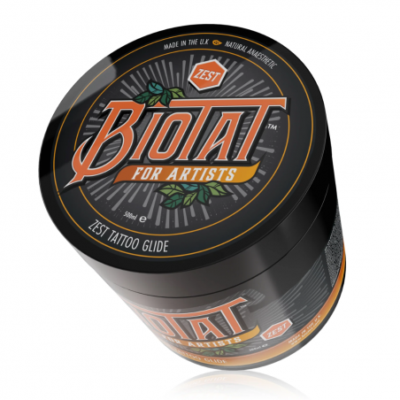 Biotat Tattoo Glide Zest is a natural, soothing glide for tattoo artists that calms and cares for the skin.