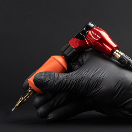 A very popular model of the FOX MINI machine with a new drive system. Guarantees better vibration-free operation! It has an additional protective cap that closes the eccentric. The system used allows the machine to be used for all types of cartridges. The universal clamp allows the use of both disposable tubes and Hawk type tubes. Made of the highest quality aircraft grade aluminum, CNC 3D machined, color anodized.