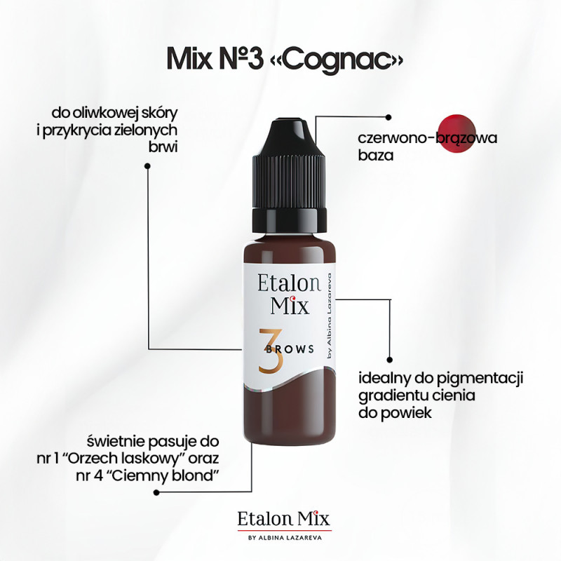 Etalon Mix is a globally acclaimed line of permanent makeup pigments. These pigments are celebrated for their vibrant, long-lasting color and smooth application. Designed for maximum versatility, these colors can be easily blended to create custom shades. Their formula was developed with maximum work comfort and customer satisfaction in mind. Etalon Mix pigments are fully REACH-compliant, meeting the highest European safety and quality standards.