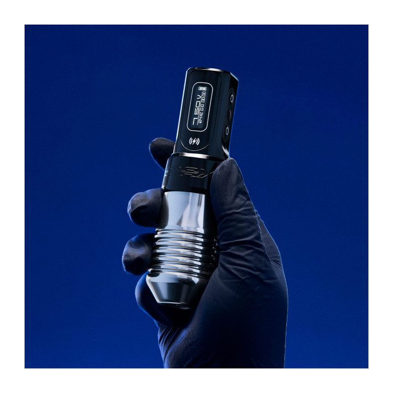 PowerBolt II with an OLED display and upgraded touchpad allows you to manage settings conveniently without the need to use an app. One of the strongest features of the Flux Max is the eGive system, a digital hit hardness adjustment that analyzes the tension of the cartridge being used and helps maintain the machine’s performance according to the selected setting. As a result, the machine offers a more predictable feel, better control during work, and adapts more easily to the tattoo artist’s technique. Another major advantage is its full compatibility with the FK Irons and Darklab ecosystem, which gives even more flexibility while working.