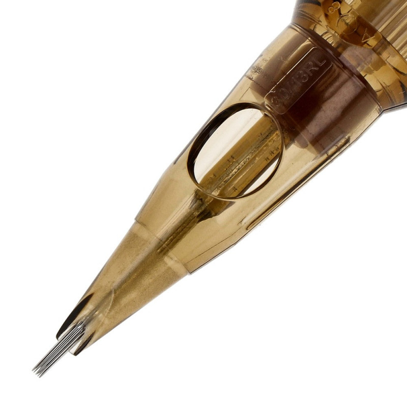Kwadron RL or Round Liner - This is a cartridge with the highest level of precision available to mankind, allowing the sharpest contours and lines to be created. In Round Liner cartridges, the needles are arranged in a circular shape, centred on a point. With our cartridges, you will be able to finish your tattoo in the finest detail, adding the final details or create perfectly sharp and thin lines and contours in detailed works.