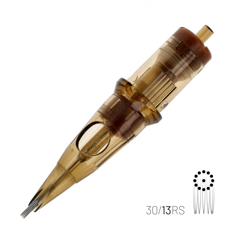 Highest quality KWADRON 0.30 mm RS Round Shader cartridge. Round Shader Cartridges are used to fill in colour and shade the tattoo after the contour has been made. The needles are arranged along the circumference of the circle, parallel to each other.
