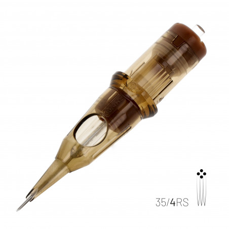 Kwadron's top quality 0.35 mm (#12) RS Round Shader Medium Taper cartridge. Medium Tapered needles are used to create bolder, wider, more old-school strokes allowing more needle to skin contact to drive more ink under the skin. Round Shader Cartridges are used to fill in colour and shade the tattoo after the contour has been made. The needles are arranged around the circumference of the circle, parallel to each other. This is the main difference between the Round Shader and the Round Liners, where the needles are also arranged along the circumference of the circle, but clustered into a point. With adequate spaces between the needles, they provide the perfect ink flow necessary for shading, creating tonal transitions.