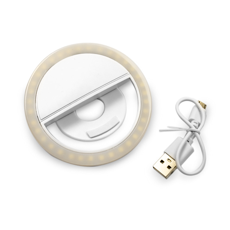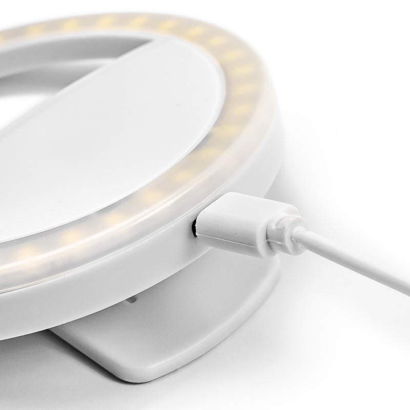 Compact RING light with a phone clip, perfect for recording educational videos and tutorials. Features 3 brightness levels of neutral light, providing natural face illumination.