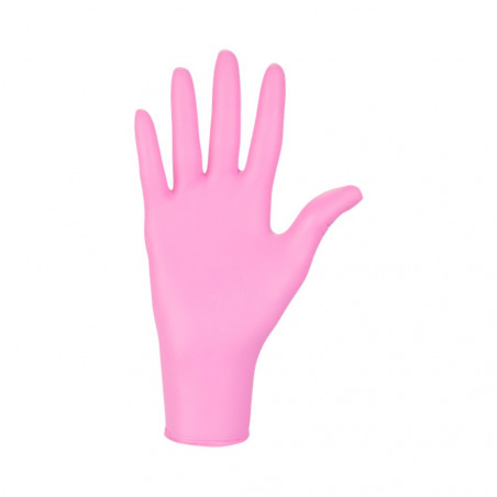 Guantes NITRYLEX desechables de color rosa de alta calidad, texturizados, nenitrilo y sin polvo. Hecho de nitrilo grueso con superficies texturizadas para los dedos. Muy resistente al desgarro.