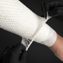 Maille élastique pour plaie d'une largeur de 4 cm, permettant de maintenir le pansement en place sans avoir besoin de ruban adhésif. Il est utile pour habiller des parties du corps telles que les bras ou les avant-bras. Il se marie parfaitement avec les pansements cicatrisants pour tatouage Unistar Skin Care.