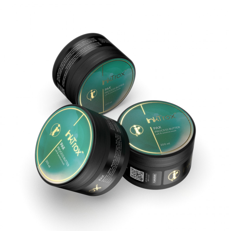 INKTROX PAX se distingue par sa texture mousseuse, qui donne l'impression d'une mousse épaisse et douce, incroyablement agréable au toucher. La structure lisse et délicate du beurre le rend presque imperceptible une fois appliqué sur la peau, garantissant un confort maximal lors de l'utilisation. Cette consistance facilite la distribution uniforme du produit, rendant le soin simple et agréable.