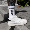 Découvrez des chaussettes qui parlent d'elles-mêmes ! Pour les amateurs de style audacieux et d'art, nous avons créé un modèle spécial de chaussettes unisexes noires ornées des mots « TATTOO » et « ARTIST ».