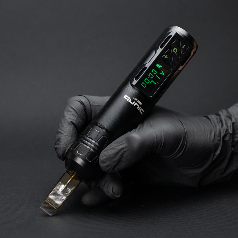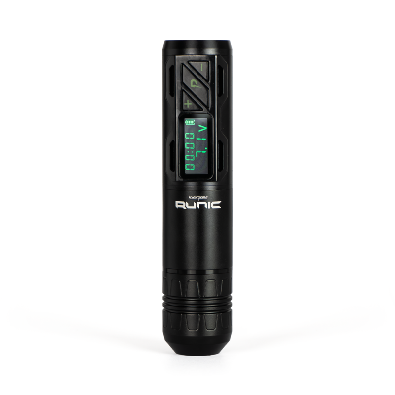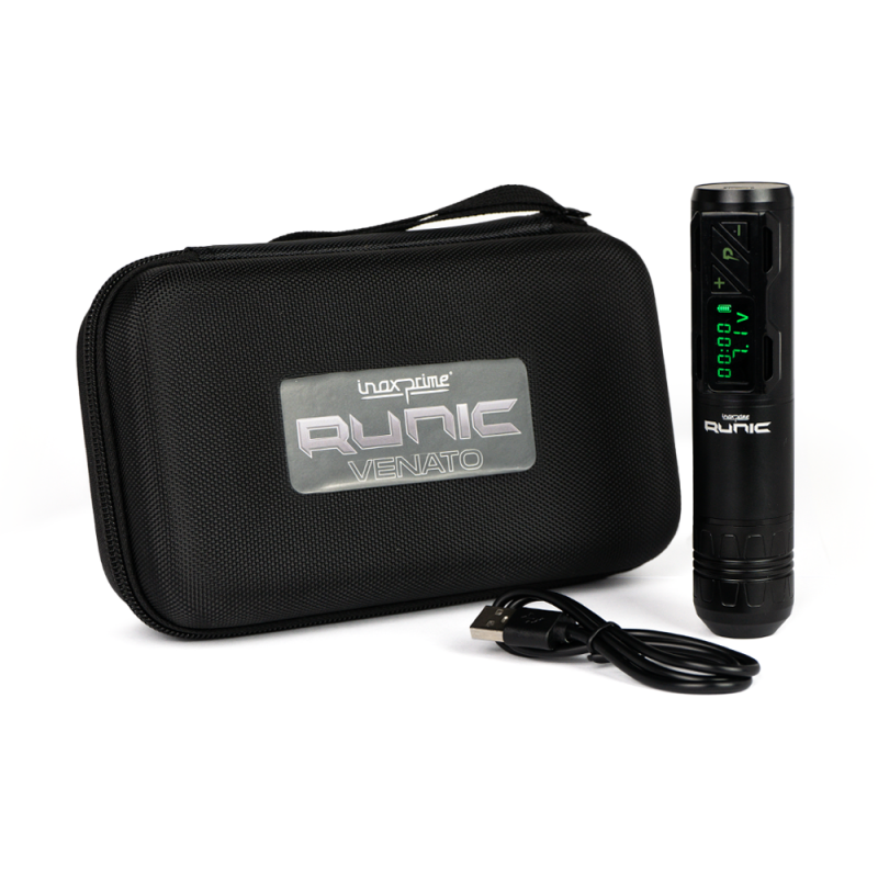 INOX PRIME RUNIC VENATO opremljen je hodom igle od 3,5 mm. Izvrsna je u sjenčanju i stvaranju glatkih gradijenata. Stroj RUNIC VENATO dizajniran je da zadovolji zahtjeve najboljih svjetskih tattoo umjetnika. Stoga smo ga opremili ergonomskim držačem promjera 32 mm koji omogućuje sigurno i udobno držanje. Ali to nije sve – INOX PRIME RUNIC VENATO može raditi do 7 sati s jednim punjenjem. Ove dvije značajke omogućuju duge sesije, smanjujući stisak i umor ruku.