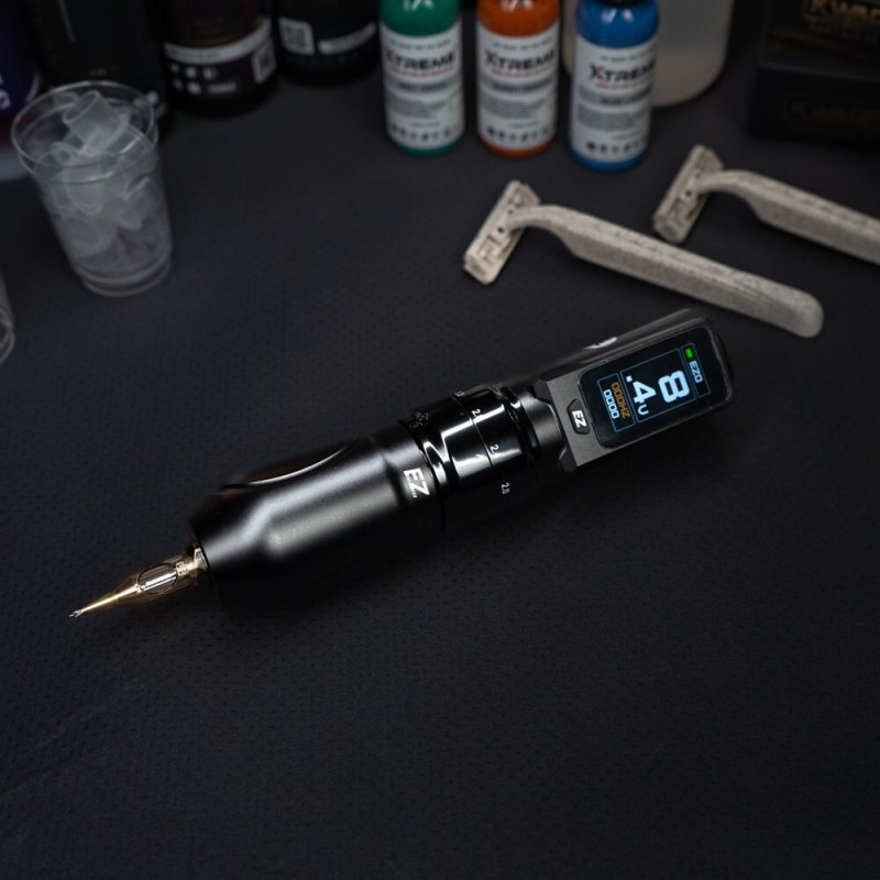 Az EZ P3 Pro Touch egy modern vezeték nélküli tetoválógép 6 állítható ecsetvonási lehetőséggel és intuitív OLED érintőkijelzővel. Sima vezérlés, precíz teljesítmény és két akkumulátor a megszakítás nélküli munkához – tökéletes választás profi tetoválóművészek számára.