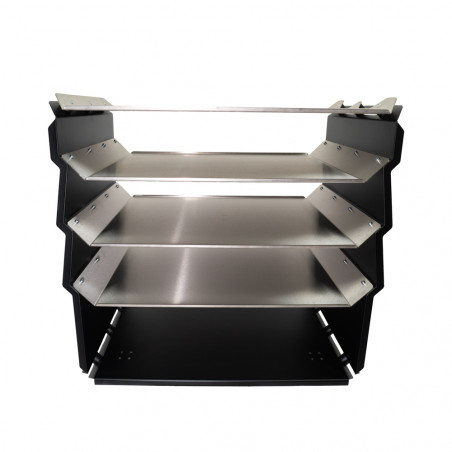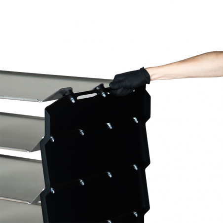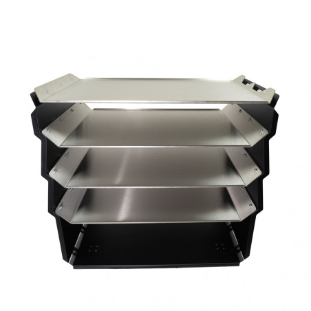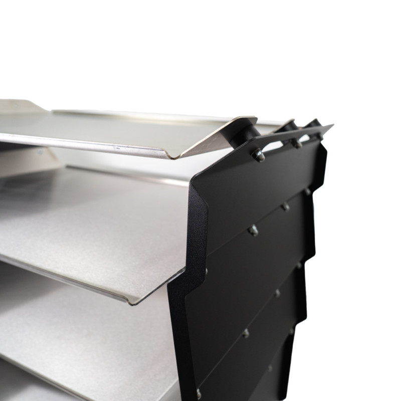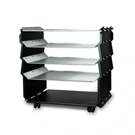 A munkaállomás rozsdamentes acél tetejű, könnyen tisztítható és sérülésálló. Rögzíthető kerekeinek köszönhetően könnyen mozgatható a stúdióban, és bárhová elhelyezhető. A kiegészítő oldalsó fogantyúk megkönnyítik a szállítást és az beállítást.
