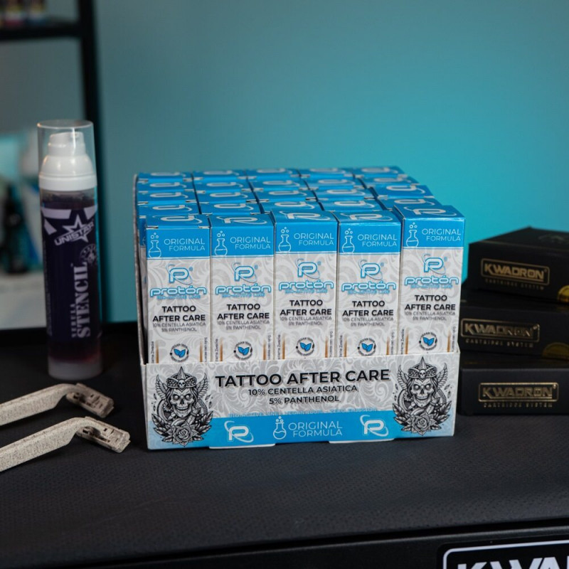 A Proton After Care Original Formula egy könnyű, könnyen használható krém, amelyet a friss tetoválások mindennapi ápolására fejlesztettek ki. Gyorsan felszívódik, azonnali enyhülést hoz, és jól működik a kezelést követő első napokban.