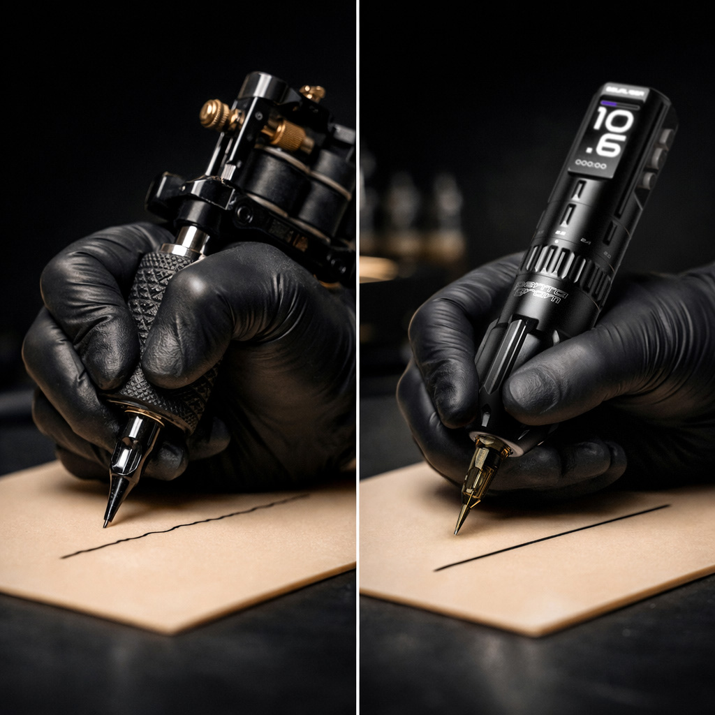 Sprzęt nie zrobi tatuażu za Ciebie. Ale może skrócić sesję o kilka procent, ustabilizować linię i ograniczyć zmęczenie przy dużych projektach.