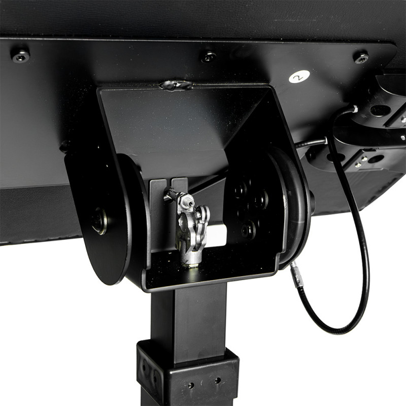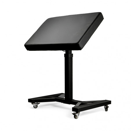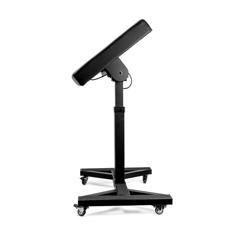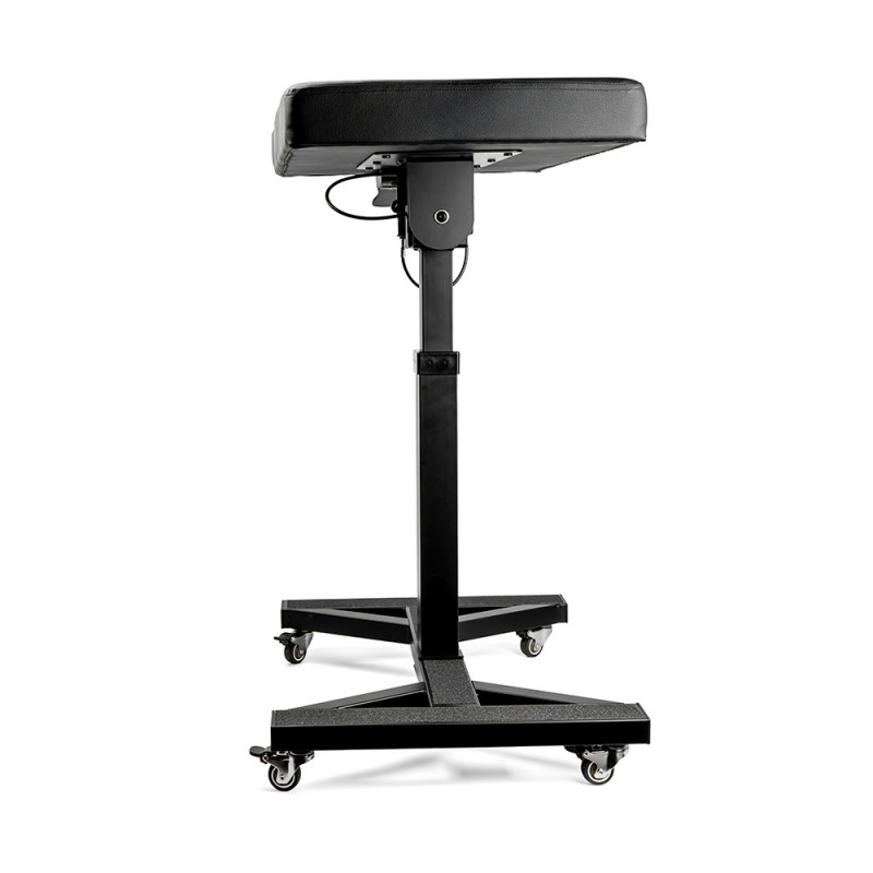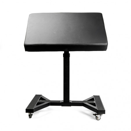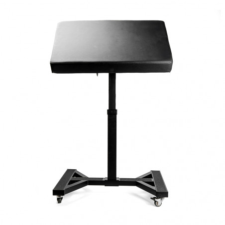 Czarny mobilny podłokietnik do tatuażu z regulacją wysokości oraz kąta nachylenia. Stabilny i wygodny do pracy w studiu.