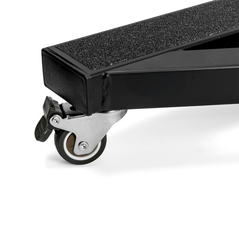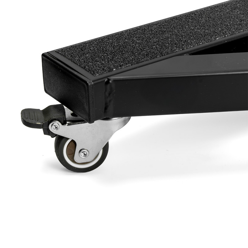 Czarny, mobilny podłokietnik zaprojektowany z myślą o pełnym komforcie podczas sesji. Wyposażony w 4 wymienne kółka, które można łatwo zdjąć i zamienić na klasyczne nóżki. Duża, solidna poduszka zapewnia wyjątkową stabilność i trwałość – bez problemu utrzymuje nawet bardzo duże obciążenie, gwarantując bezpieczne podparcie. Stabilna konstrukcja eliminuje chwianie się, a regulacja wysokości w zakresie 70–90 cm oraz kąta nachylenia poduszki pozwala precyzyjnie dopasować pozycję do potrzeb tatuatora i klienta. Idealny wybór do profesjonalnego studia tatuażu.