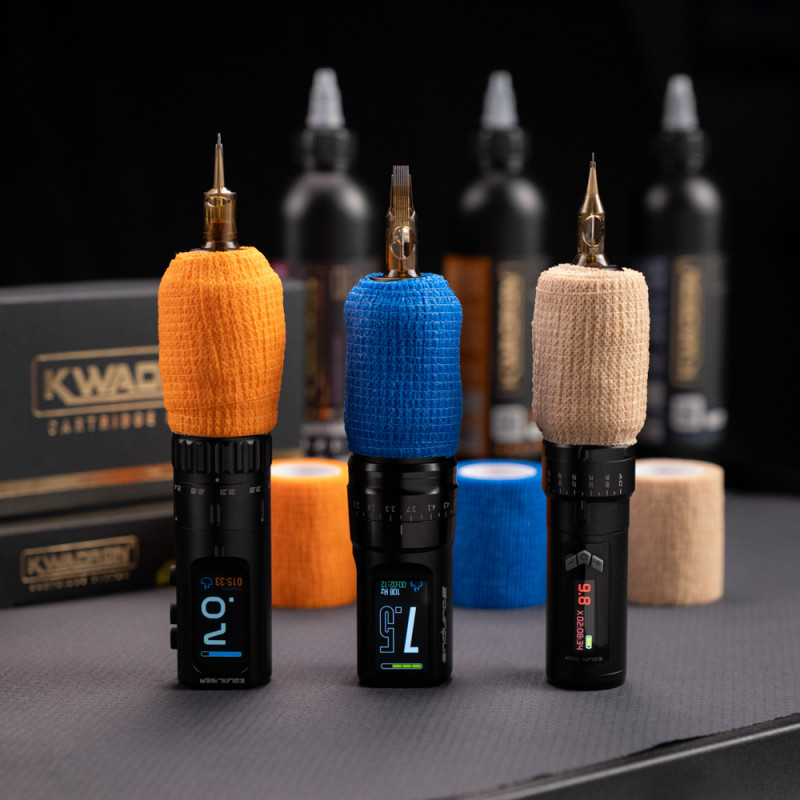 To bandaż, który nie obciąża a ułatwia uchwyt gryfu, zwiększając jego średnice. Pozostaje przy tym miękki ułatwiając wielogodzinną pracę tatuatora. Taśma lepi się sama do siebie ale nie przyczepia się do niczego innego, dlatego nie będzie kleiła się do rękawiczek podczas pracy oraz nie pozostawi na gryfie lepkiego osadu. Mimo to nie zsuwa się i nie przemieszcza. Jest elastyczna i wytrzymała. Przepuszcza powietrze. Dzięki wszystkich swoim zaletom zwiększa komfort pracy tatuatora.