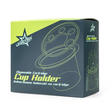 Jednorazowe plastikowe kubeczki na 4 kartridże, stworzone z myślą o wygodnej organizacji stanowiska pracy. Pomagają stabilnie ułożyć kartridże i utrzymać porządek podczas sesji, dzięki czemu wszystko pozostaje na swoim miejscu. Kolorowa podstawka nadaje wyrazisty wygląd i podtrzymuje cartridge, a przezroczysta dolna część tworzy miejsce na wodę destylowaną, dzięki czemu można wygodnie odłożyć kartridż w trakcie pracy, tak aby tusz w nim nie zasychał.