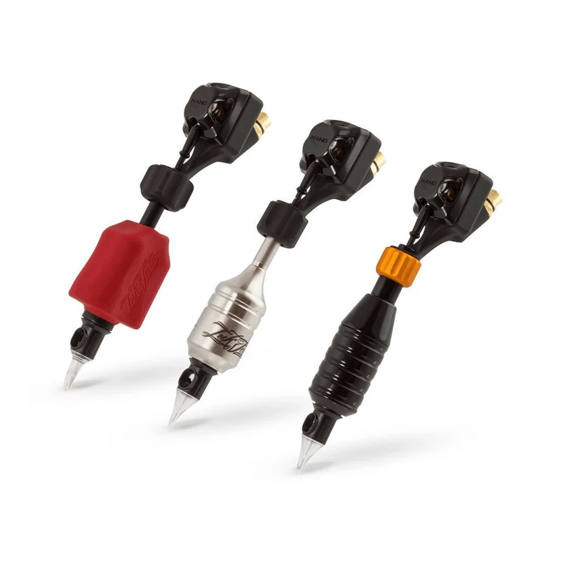 A Flite Nano Elite se destaca como uma das máquinas mais versáteis da linha Inkjecta. Ela inclui quatro barras de torção intercambiáveis que permitem ajustar a elasticidade de acordo com suas necessidades — de macias e médias a duras e semirrígidas. Essa flexibilidade permite que você adapte a resposta da máquina ao seu estilo pessoal de tatuagem e às necessidades específicas de cada peça.
