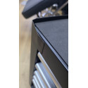 Stația de lucru este construită pe un cadru robust din oțel sudat. Dispune de patru roți cauciucate și un mâner convenabil, permițându-vă să mutați cu ușurință stația în orice locație. Roțile sunt echipate cu un blocaj special, transformându-l într-un dulap stabil. Mai mult, posibilitatea de a-l încuia cu o cheie asigură securitatea conținutului său.