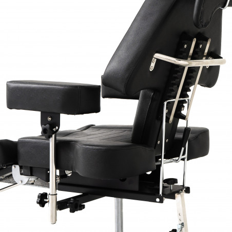 Vďaka svojmu klasickému dizajnu sa kreslo hodí do každého interiéru tetovacieho štúdia. Základňa je vyrobená z kvalitnej ocele, zaisťuje stabilitu a bezpečnosť pri práci. Mäkká pena pokrytá na dotyk príjemnou ekokožou poskytuje pohodlie a komfort. S úplným nastavením všetkých prvkov stoličky si môžete byť istí, že nájdete dokonalé nastavenia pre seba aj pre svojho klienta. Tetovacie kreslo je skladacie a môže slúžiť ako pohodlné ležadlo.