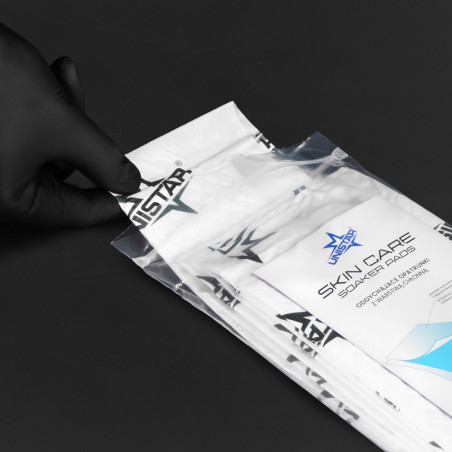 Vďaka trom vrstvám sú podložky na starostlivosť o pokožku mimoriadne funkčné a mega absorpčné. Vonkajšia vrstva je vodeodolná a poskytuje účinnú ochranu tetovania pred vonkajším prostredím. Stredná vrstva účinne absorbuje tekutiny. Zatiaľ čo mäkká a priedušná vnútorná vrstva zaručuje pohodlie a hygienu pokožky podráždenej procesom tetovania. S týmto riešením si môžete byť istí, že svojim zákazníkom poskytnete najvyššiu kvalitu starostlivosti po tetovaní.