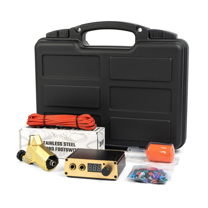 Повний набір для татуювання – дротовий комплект з тату-машинкою, блоком живлення, аксесуарами та захисним чохлом. Надійний вибір для тих, хто віддає перевагу роботі з класичним обладнанням або хоче побудувати своє робоче місце на надійній технічній базі.